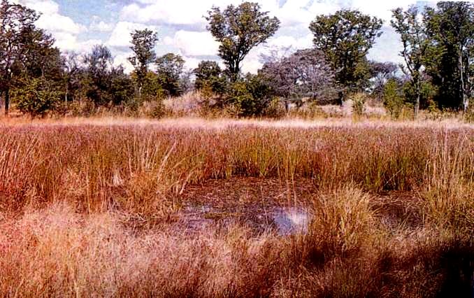 | Фото 2: Sakamanduna pan, место вылова Nothobranchius sp. "Chobe" (место 38).[Photo: Van der Waal & Skelton, 1984, Madoqua Vol. 13(4): 310]